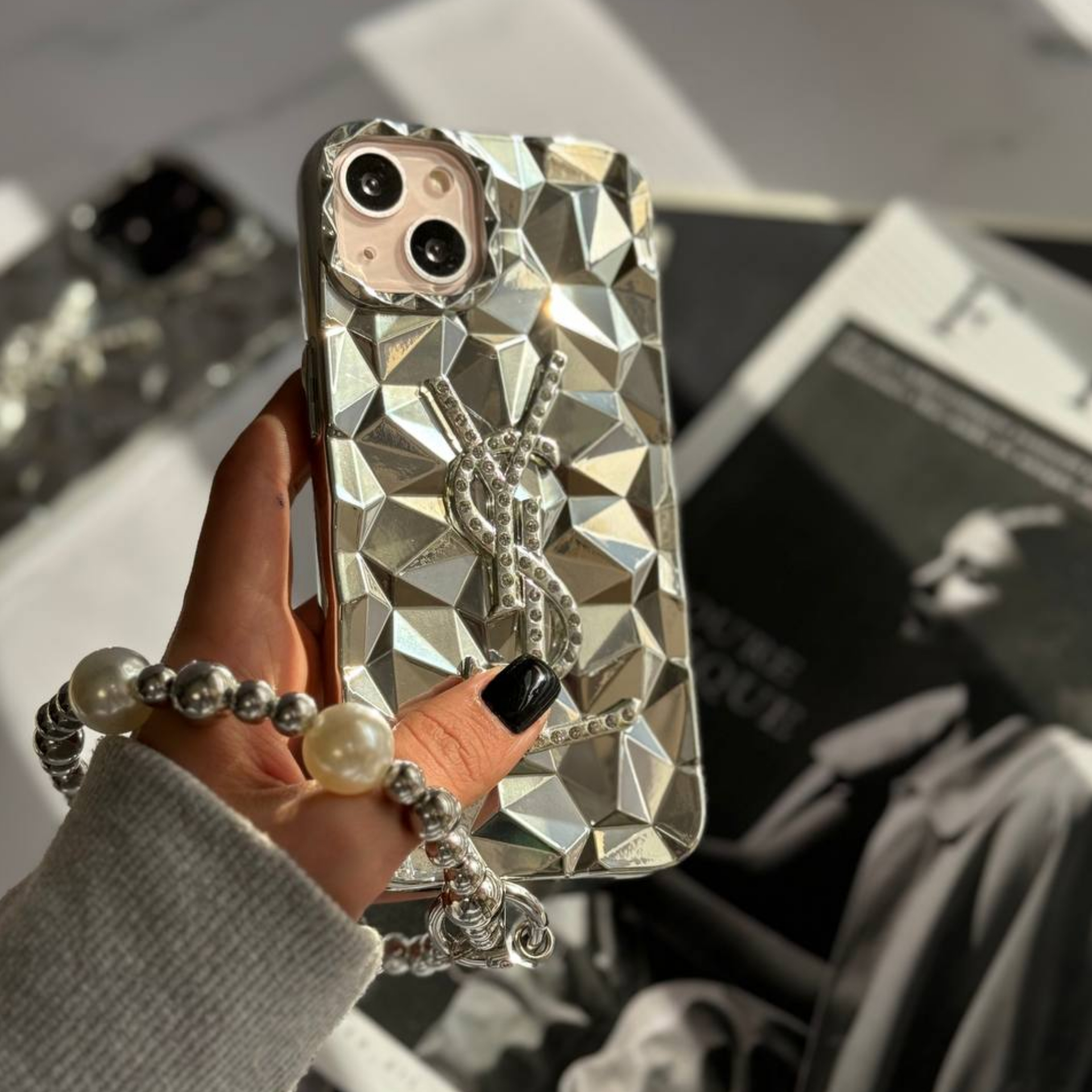 قاب سیلور ysl + آویز