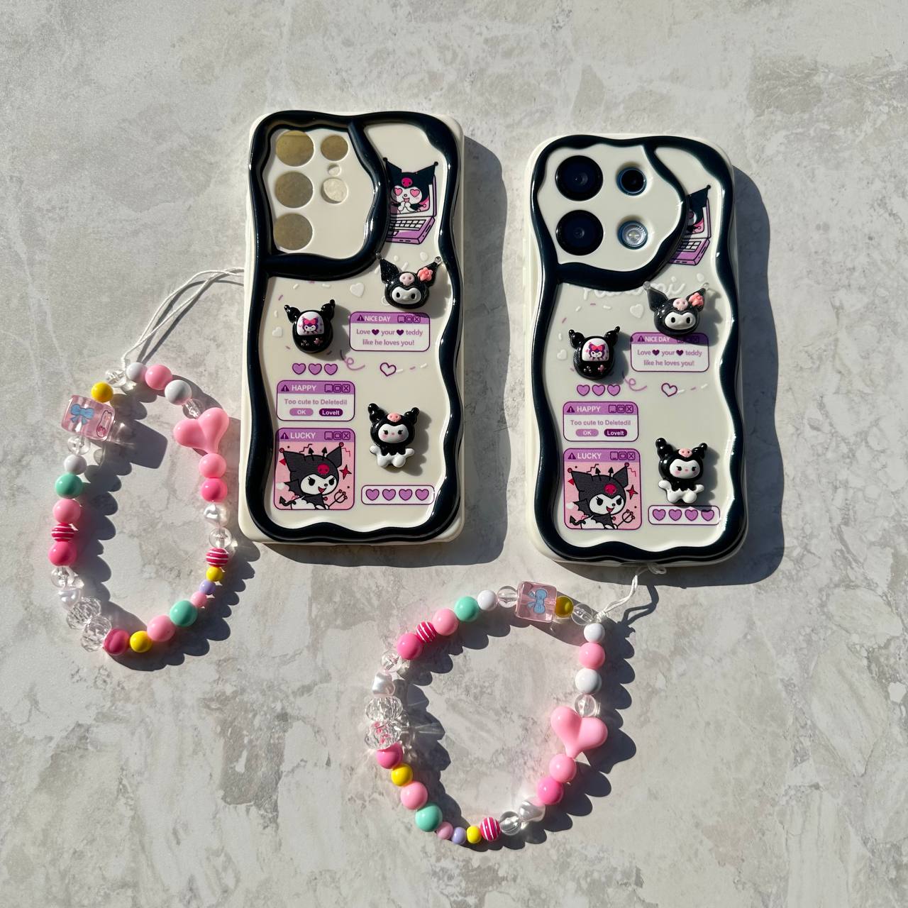 قاب موج عروسک برجسته کرومی + آویز /آیفون سامسونگ شیائومی