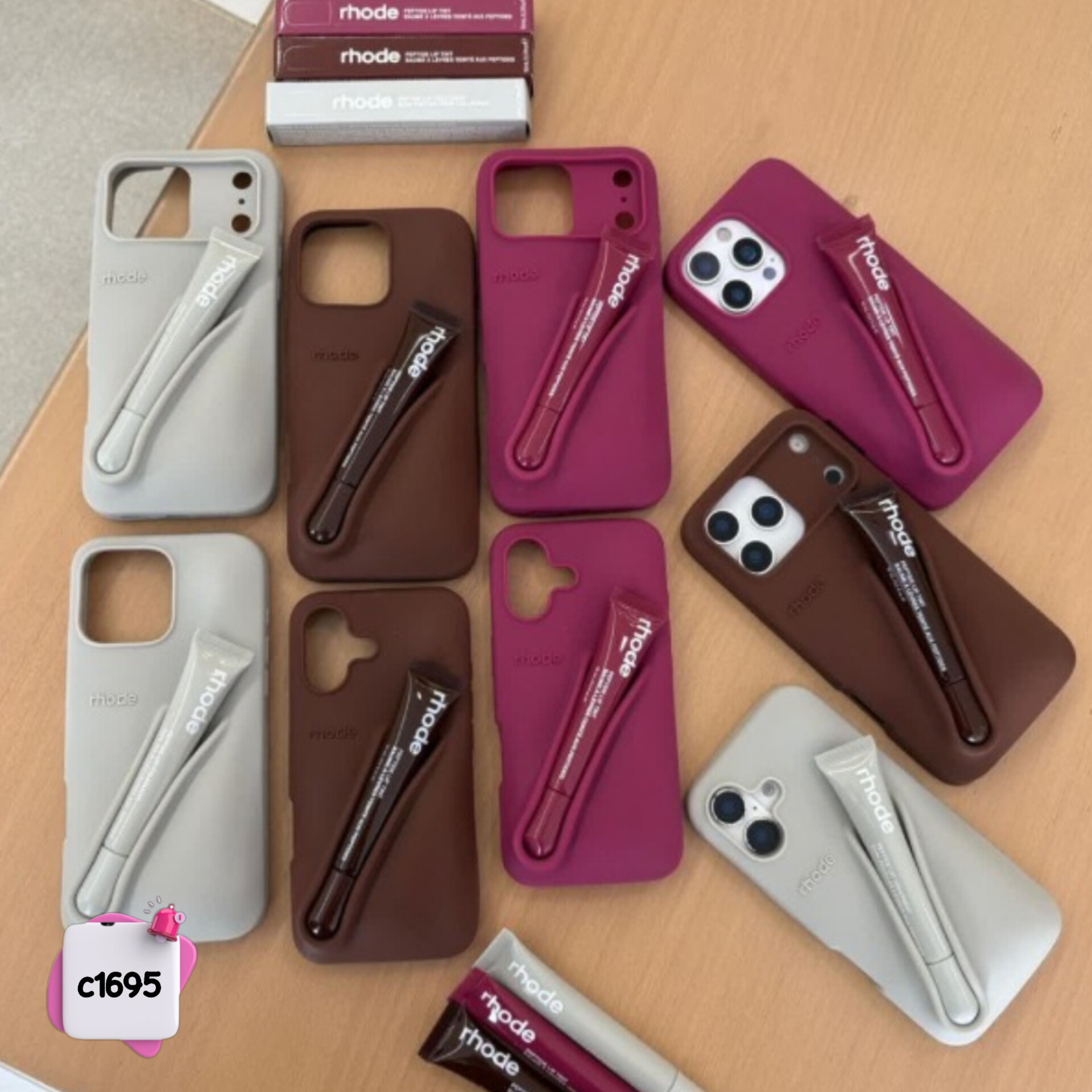 قاب سیلیکونی رنگی روود rhode + لیپ گلس کد c1695
