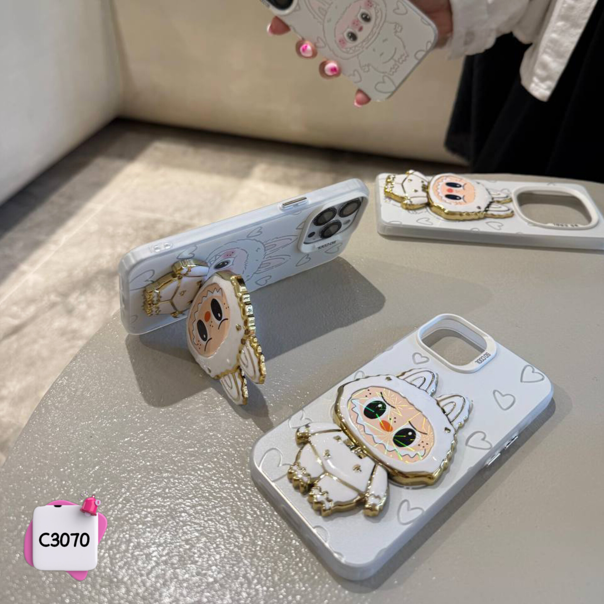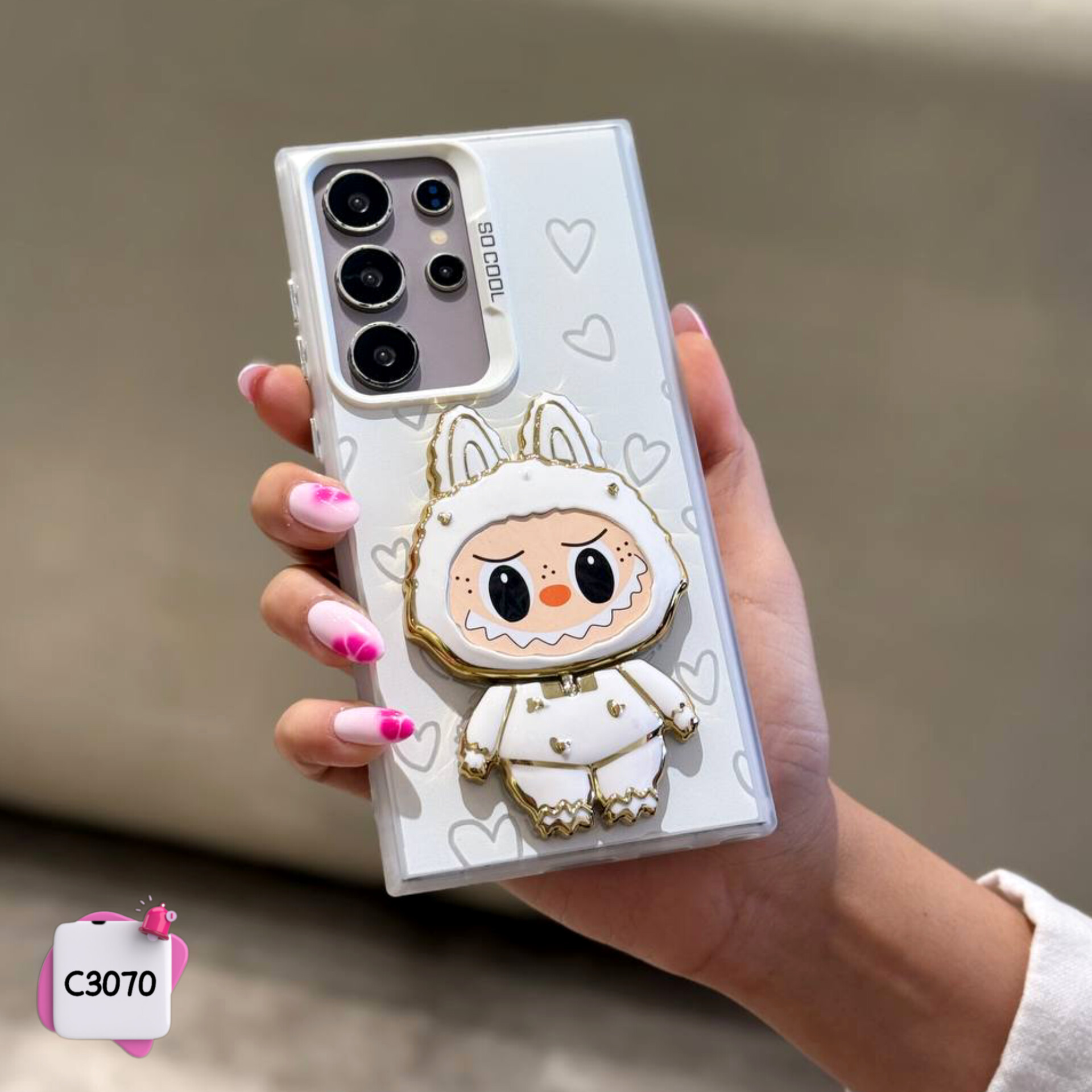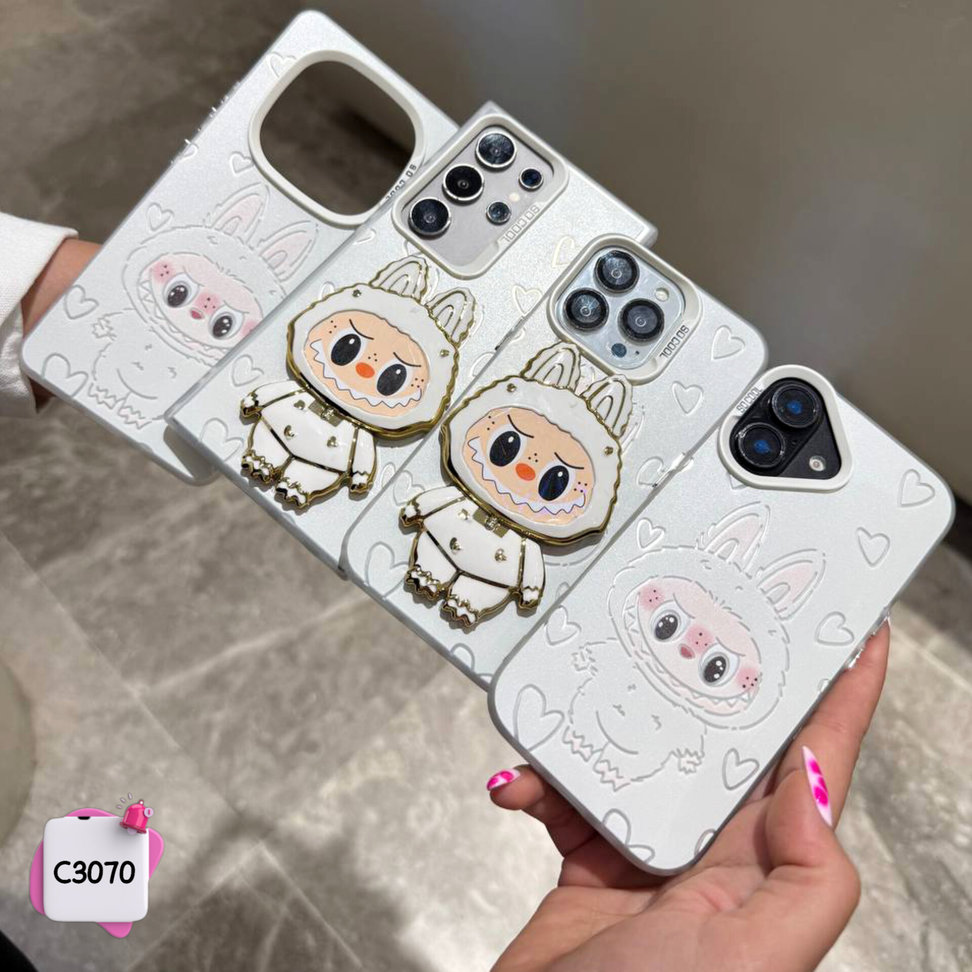 قاب گوشی لبوبو استندشو آیینه ای Labubu کد C3070 / آیفون سامسونگ شیائومی