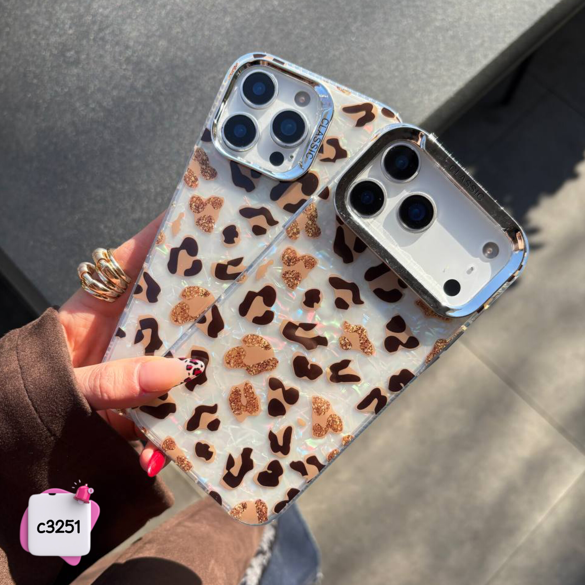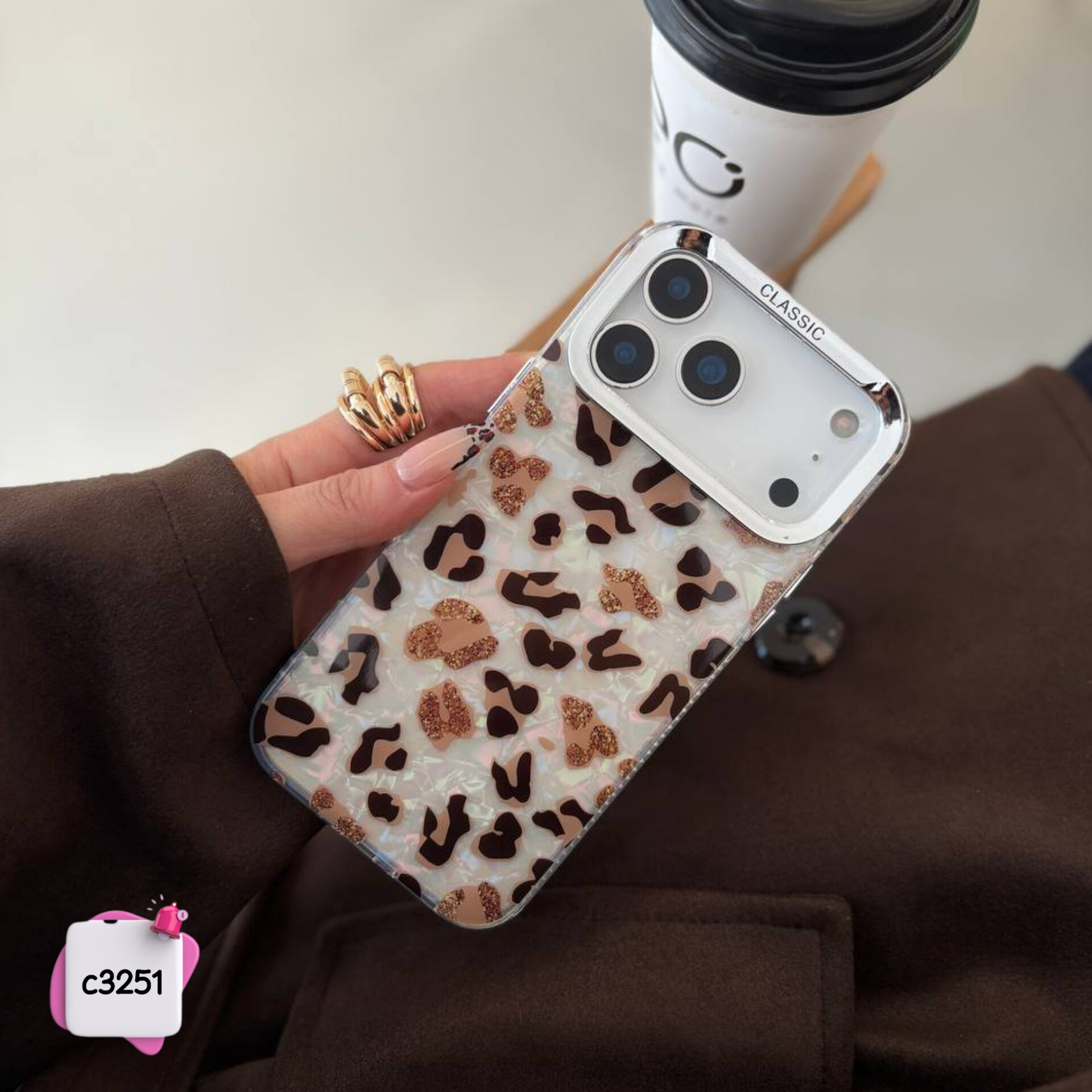 قاب گوشی پلنگی ماربل (لنز کلاسیک) نیمه شفاف c3251 / آیفون سامسونگ شیائومی