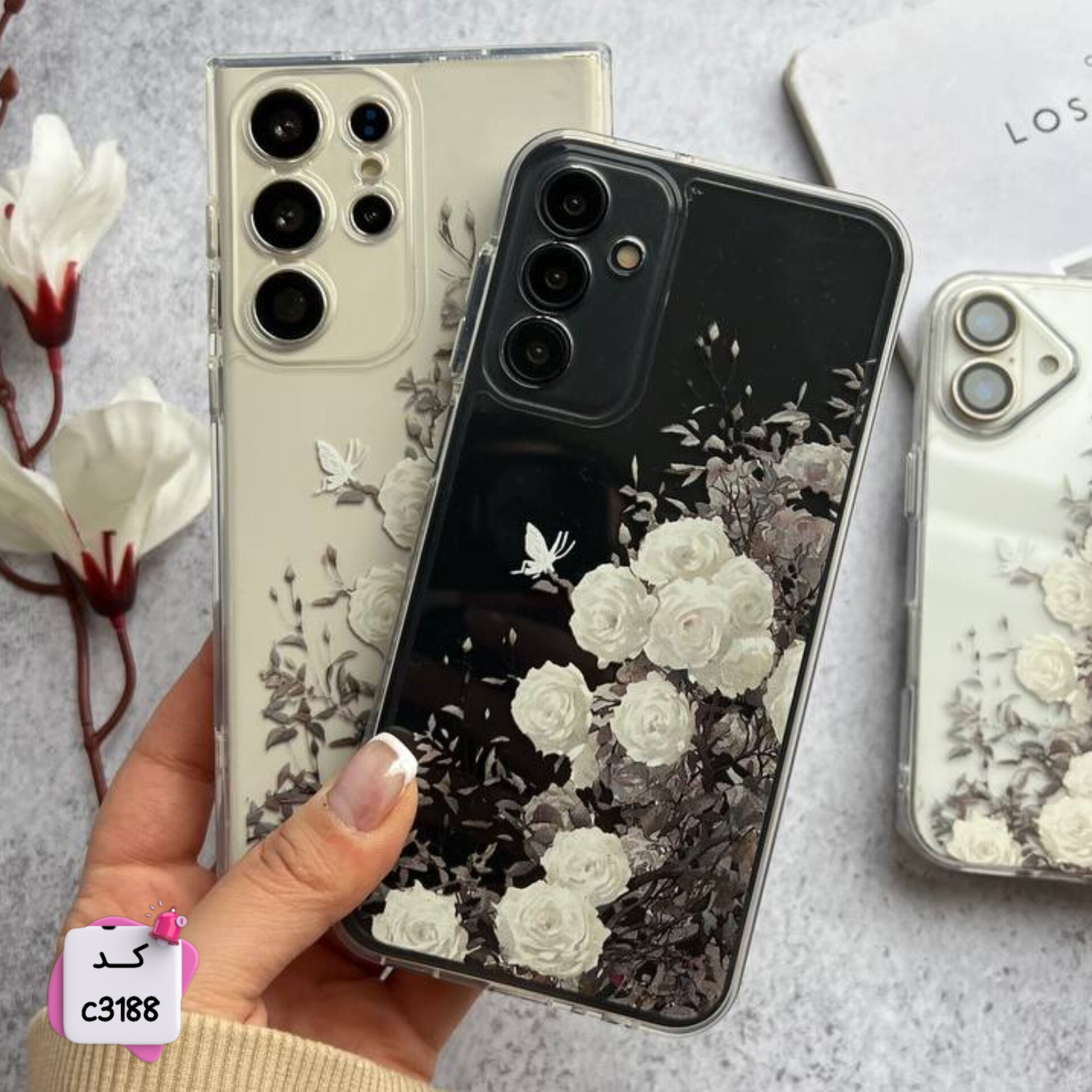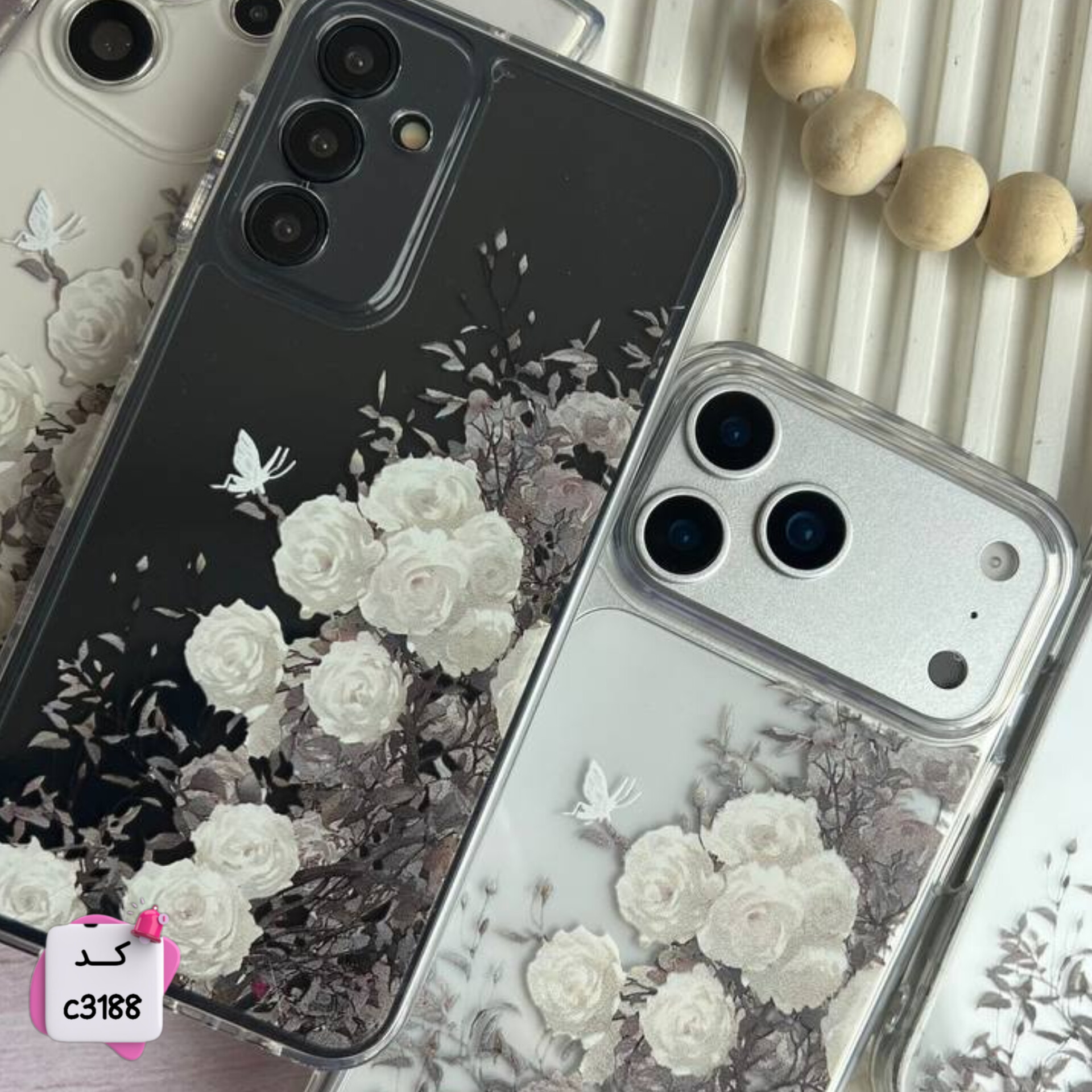 قاب گوشی گل رز سفید شفاف c3188 / ایفون سامسونگ شیائومی