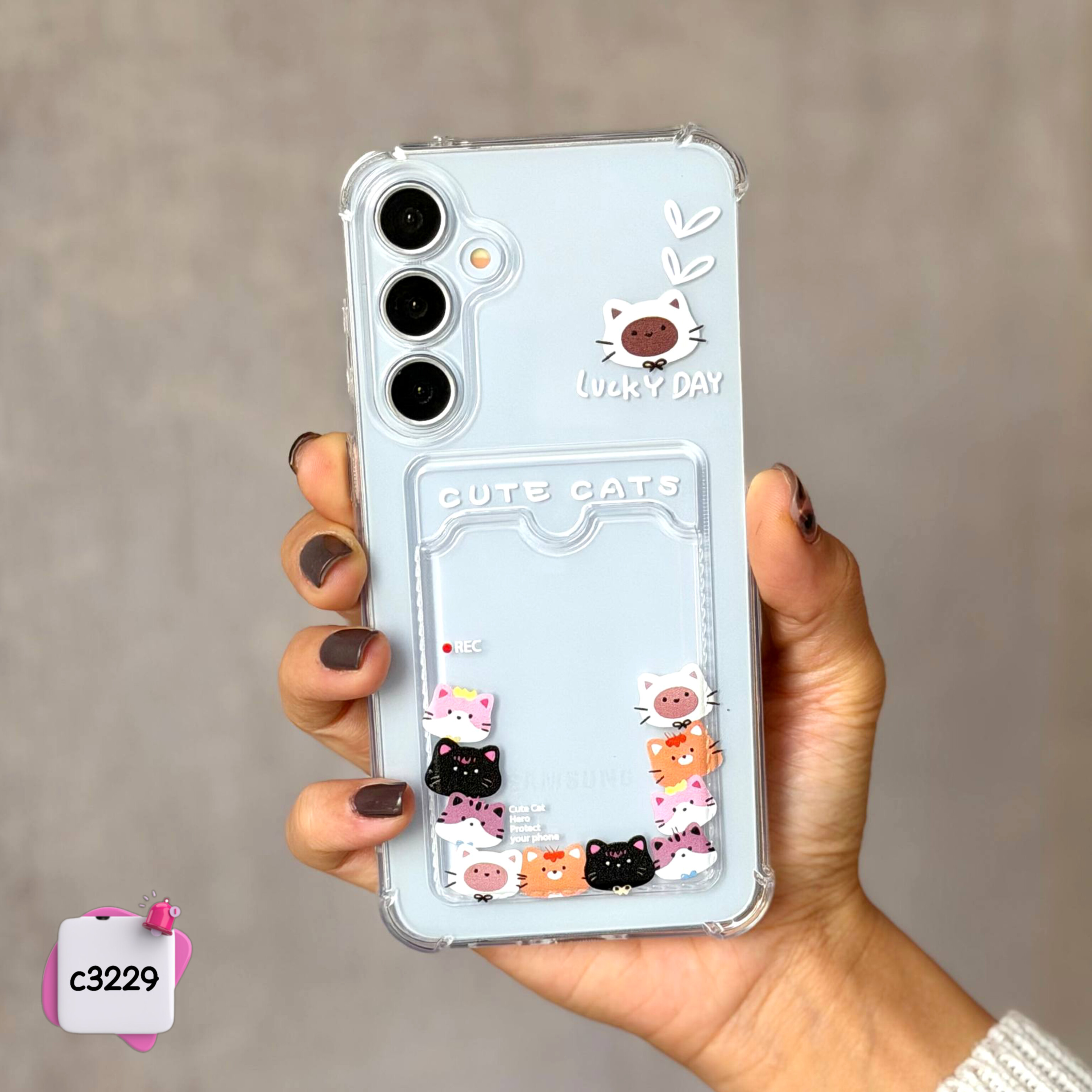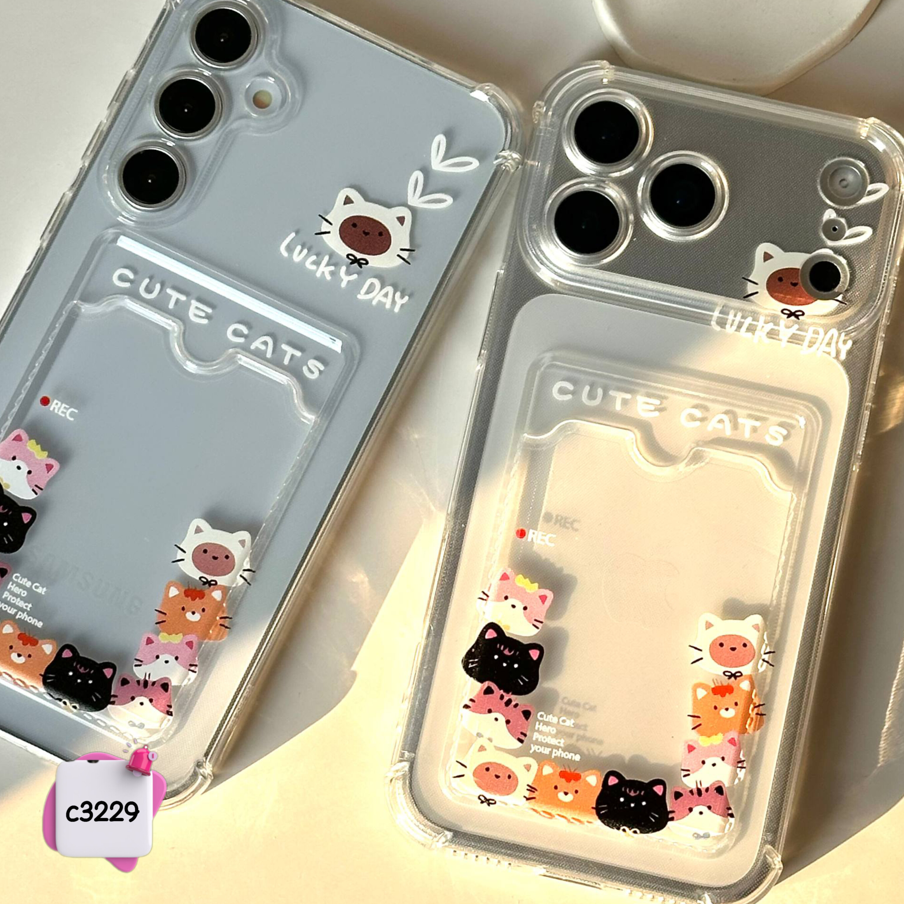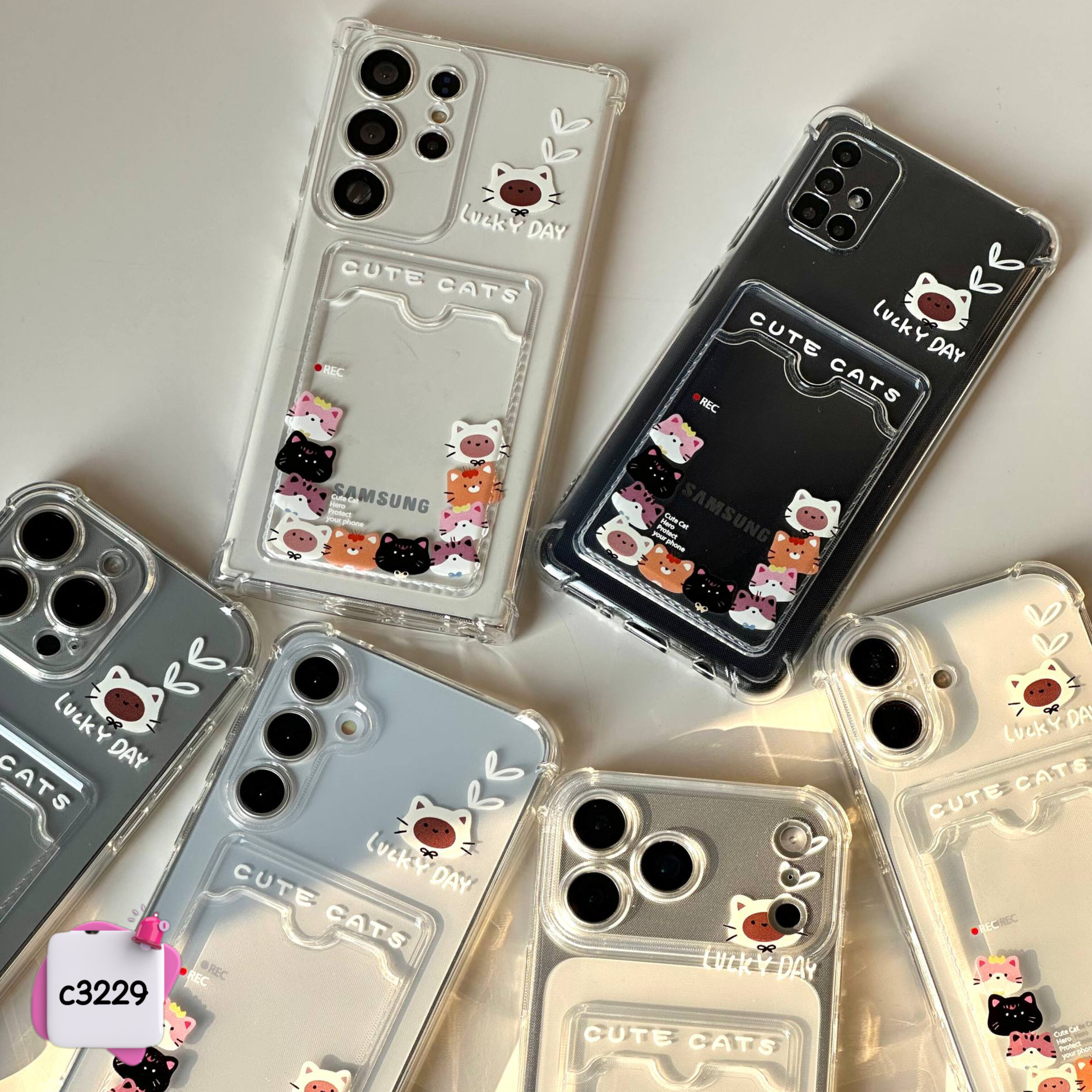 قاب گوشی جاکارتی دار شفاف خانواده گربه ها c3229 / ایفون سامسونگ شیائومی