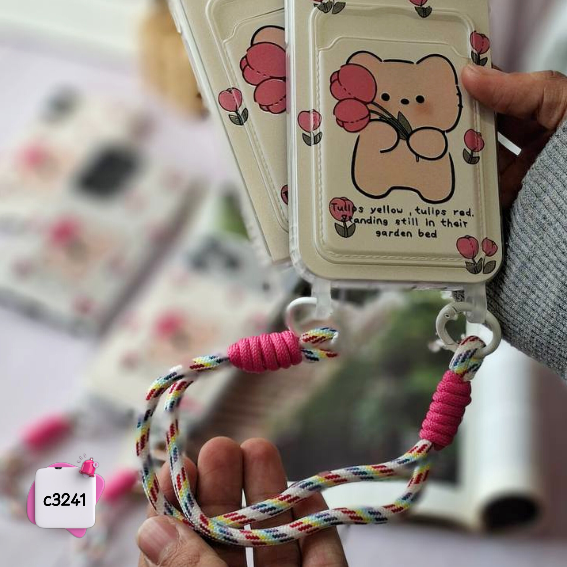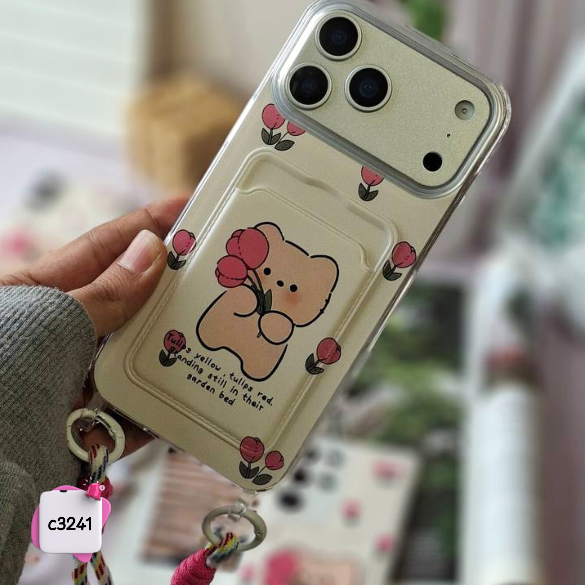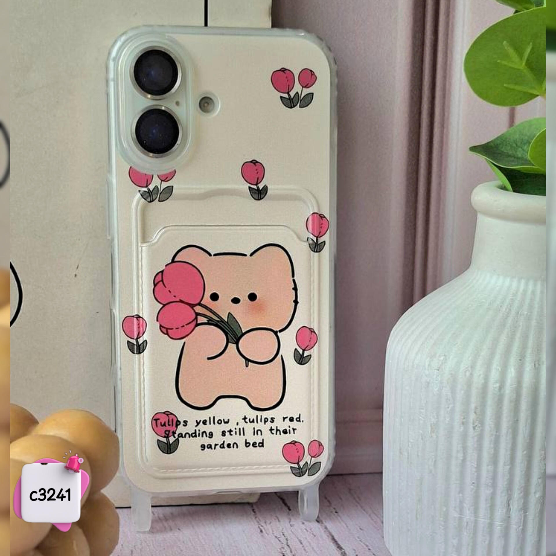 قاب گوشی جاکارتی دار خرس و لاله c3241 / ایفون سامسونگ
