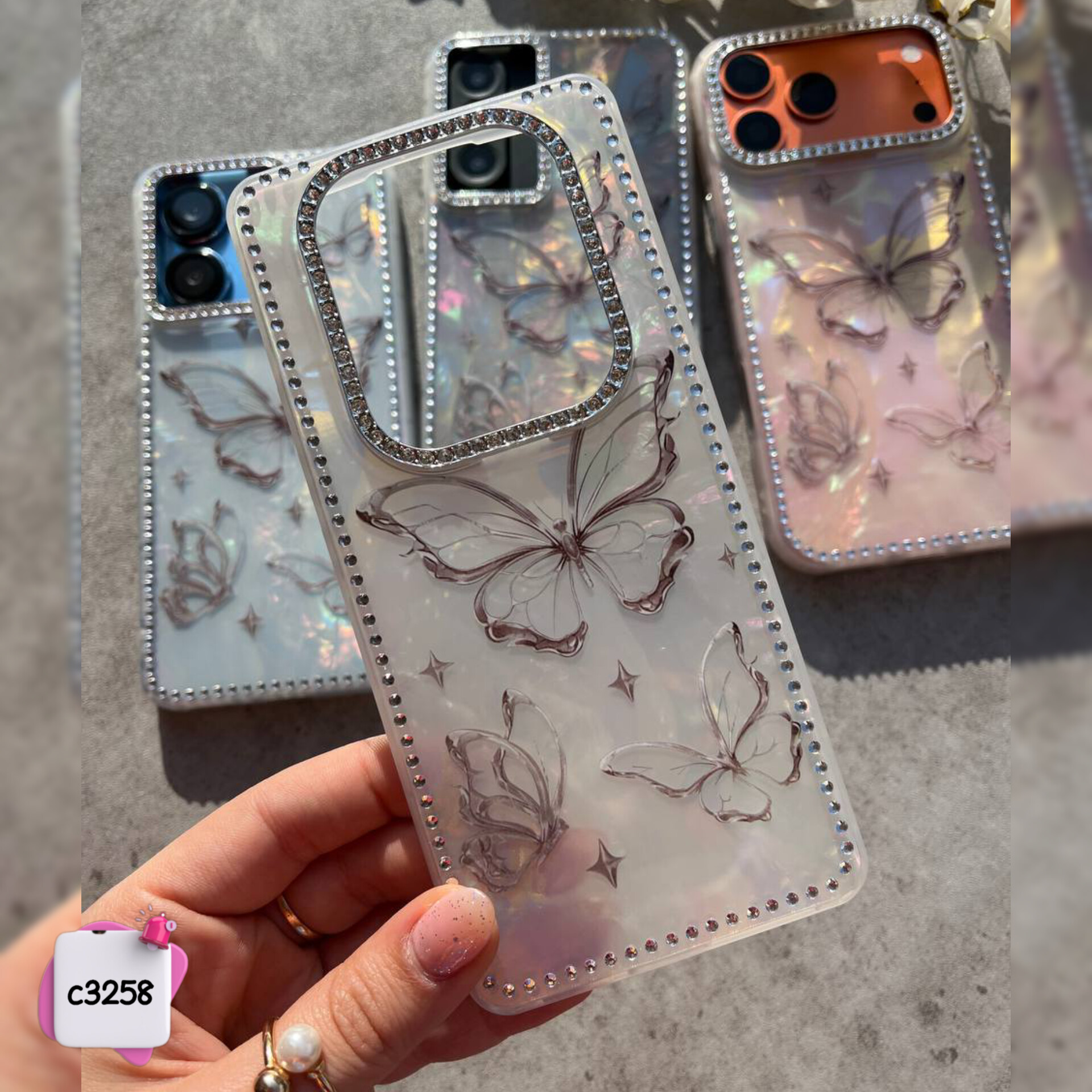 قاب گوشی پروانه یخی نگین دار c3258 / ایفون سامسونگ شیائومی
