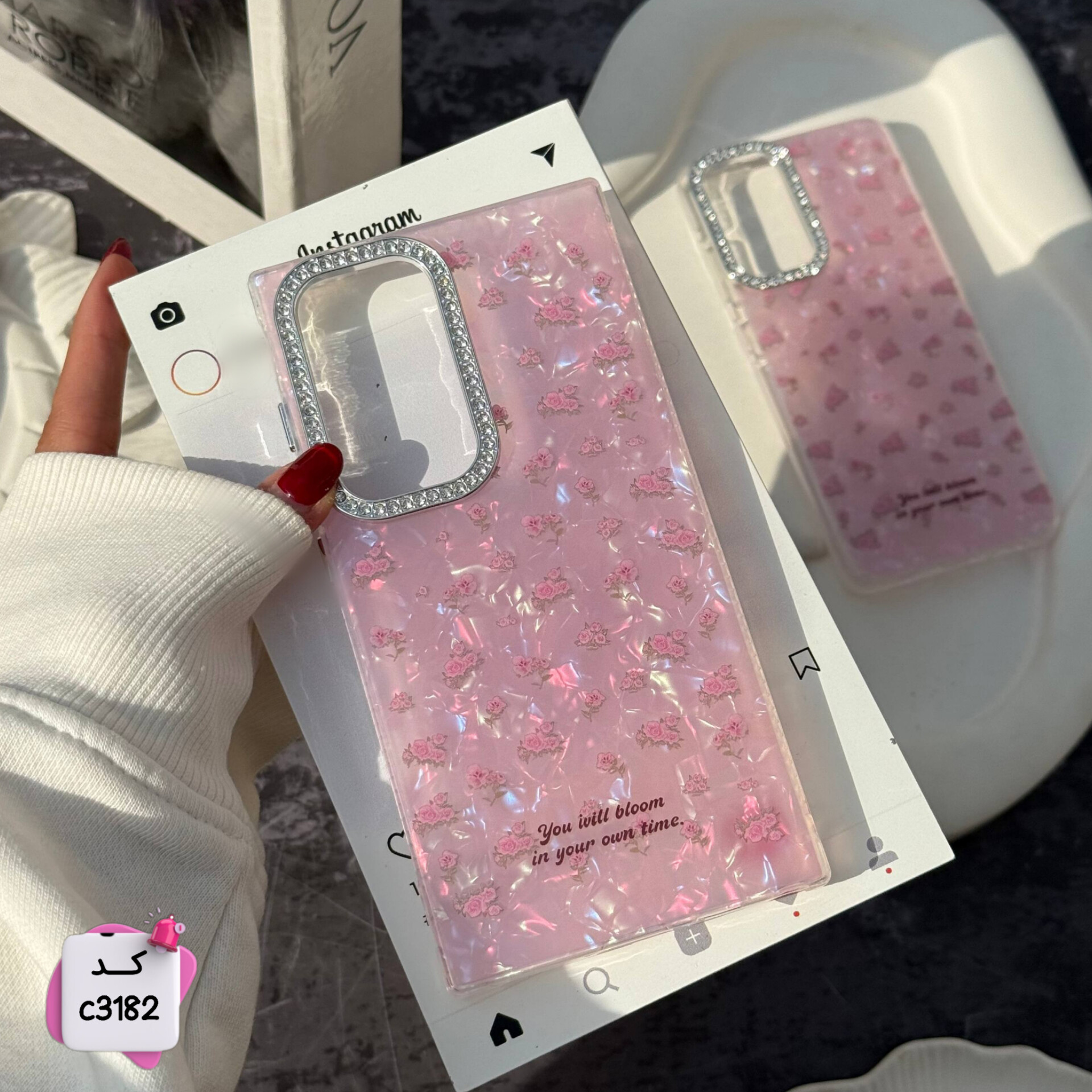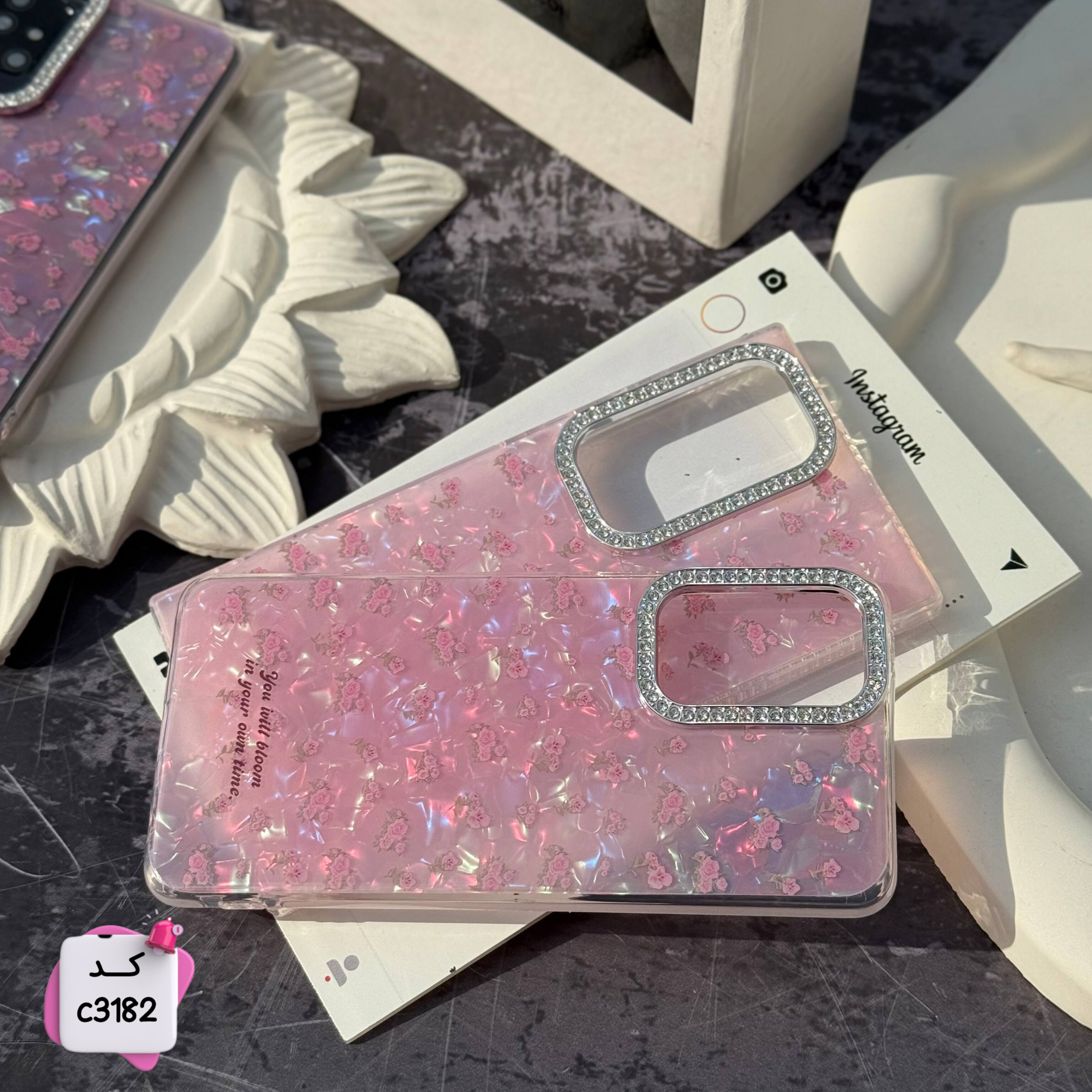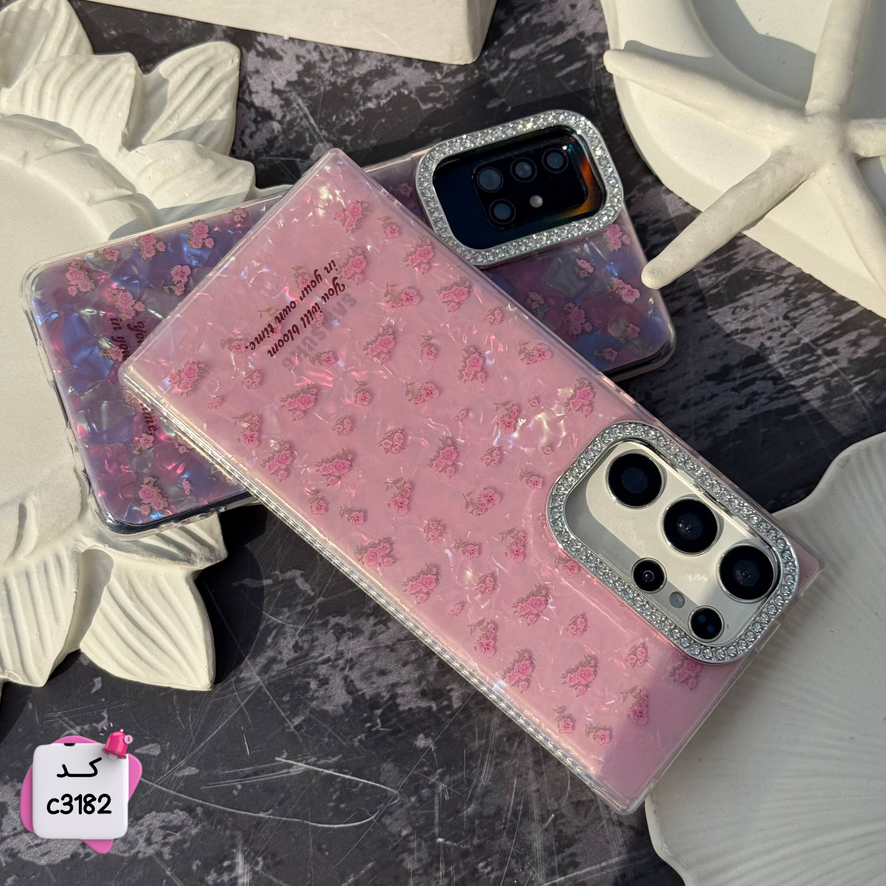 قاب گوشی گل یخی صورتی c3182 / ایفون سامسونگ شیائومی
