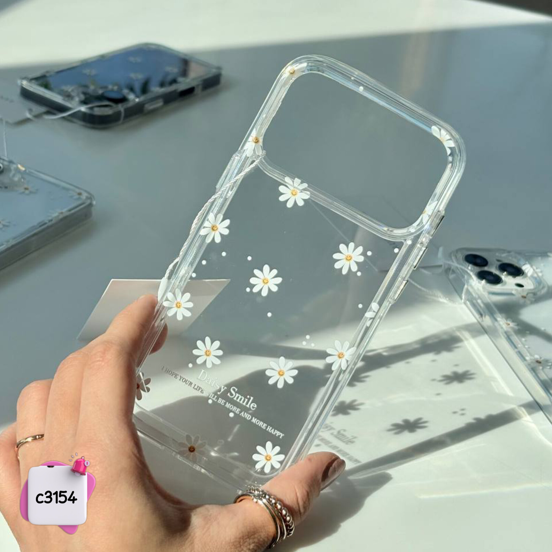 با قاب گوشی گل بابونه شفاف مدل C3154، به گوشی خود سبک و زیبایی طبیعی ببخشید! این قاب، مناسب برای آیفون، سامسونگ و شیائومی، طراحی شده تا از گوشی شما محافظت کرده و در عین حال با طرح جذاب گل بابونه، آن را به یک اکسسوری منحصر به فرد تبدیل کند. هم‌اکنون خرید کنید و جذابیت را تجربه کنید!