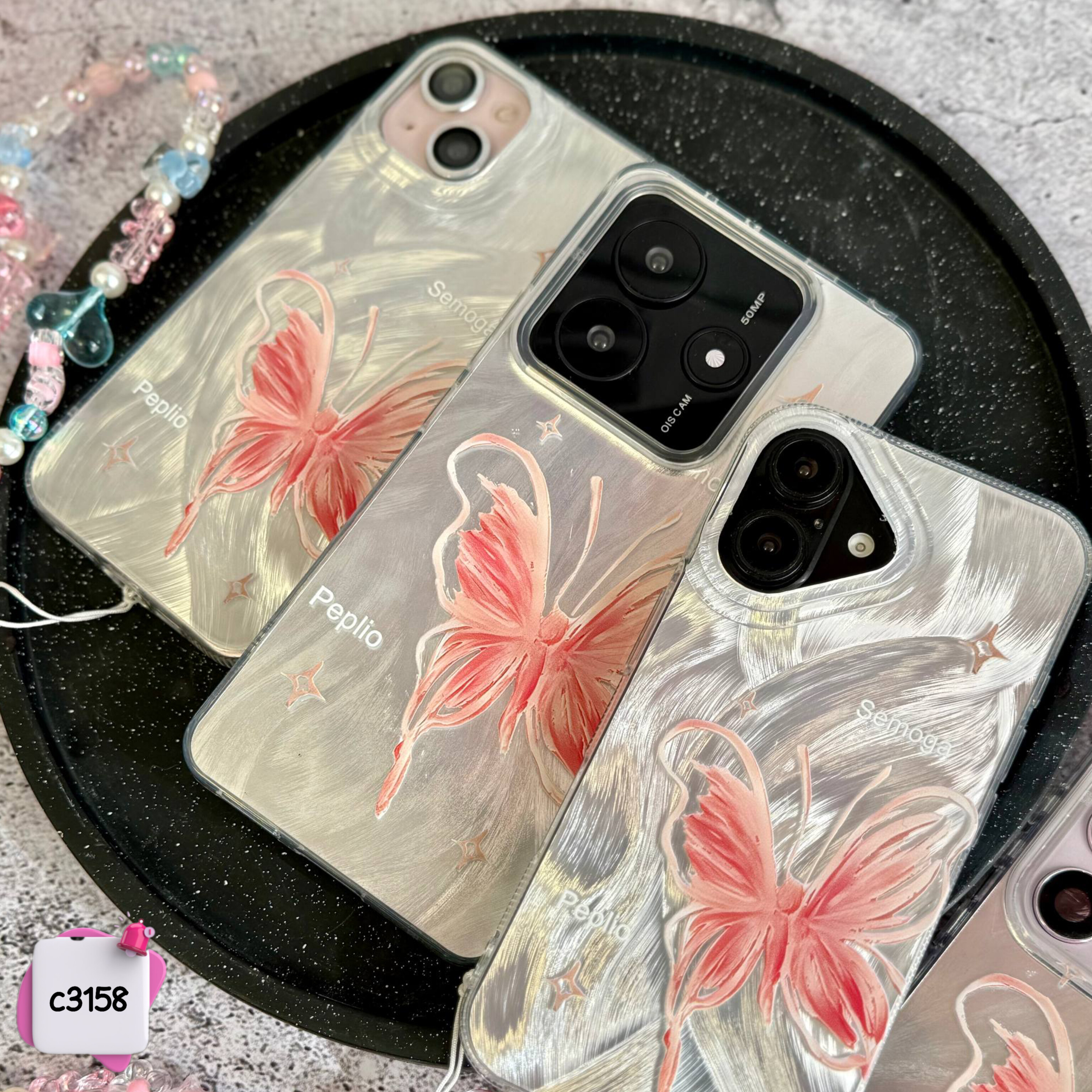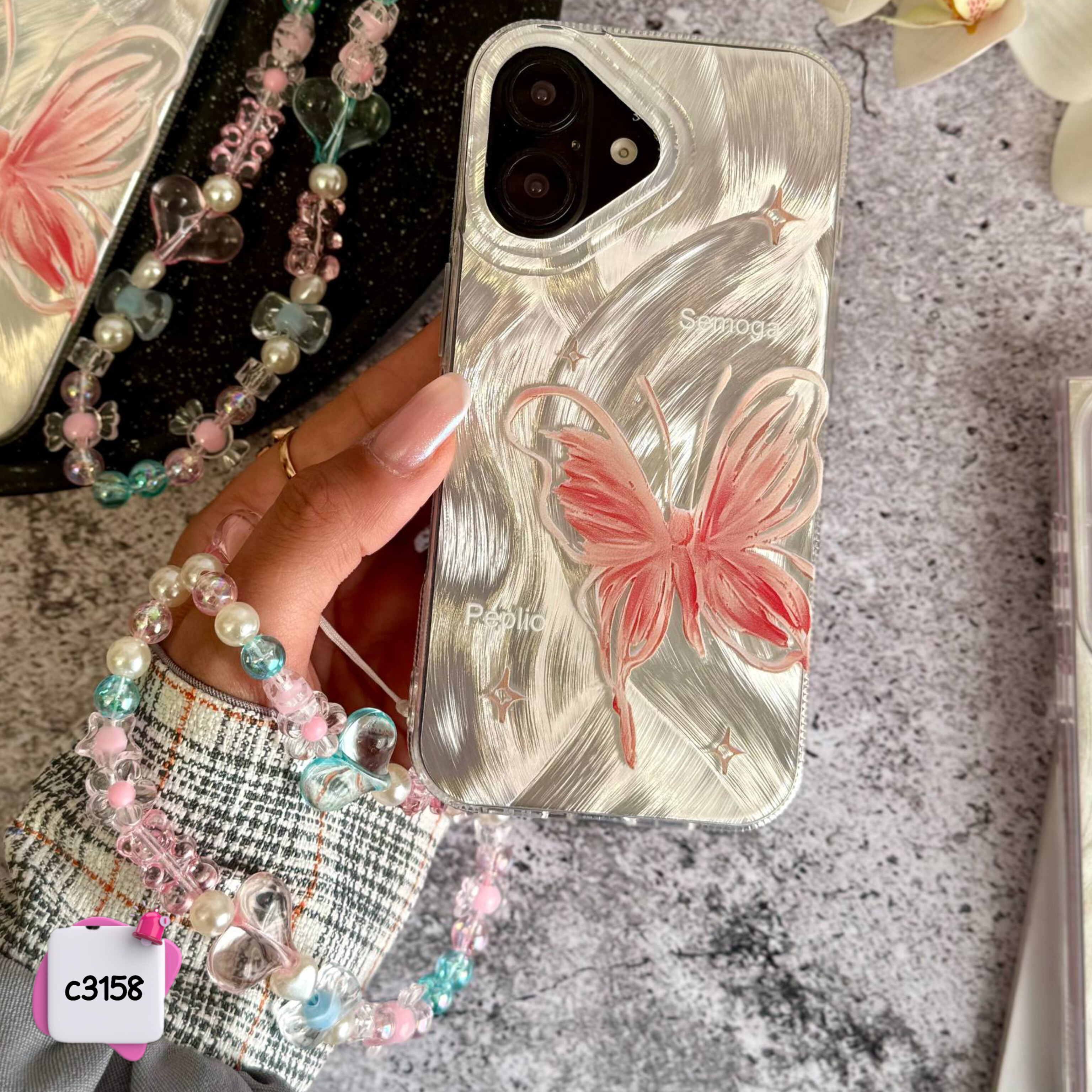 قاب گوشی پروانه رز + آویز کد c3158 / ایفون
