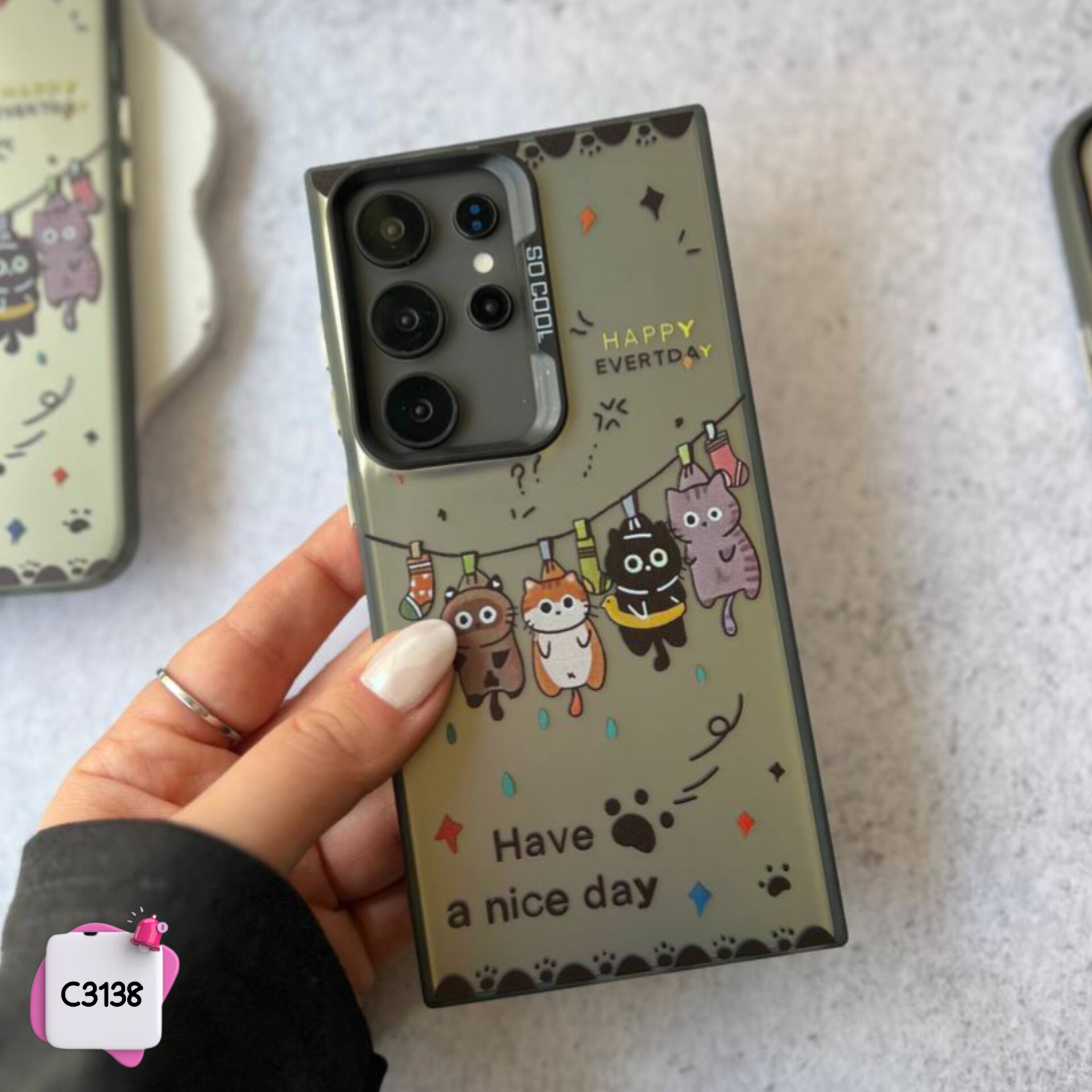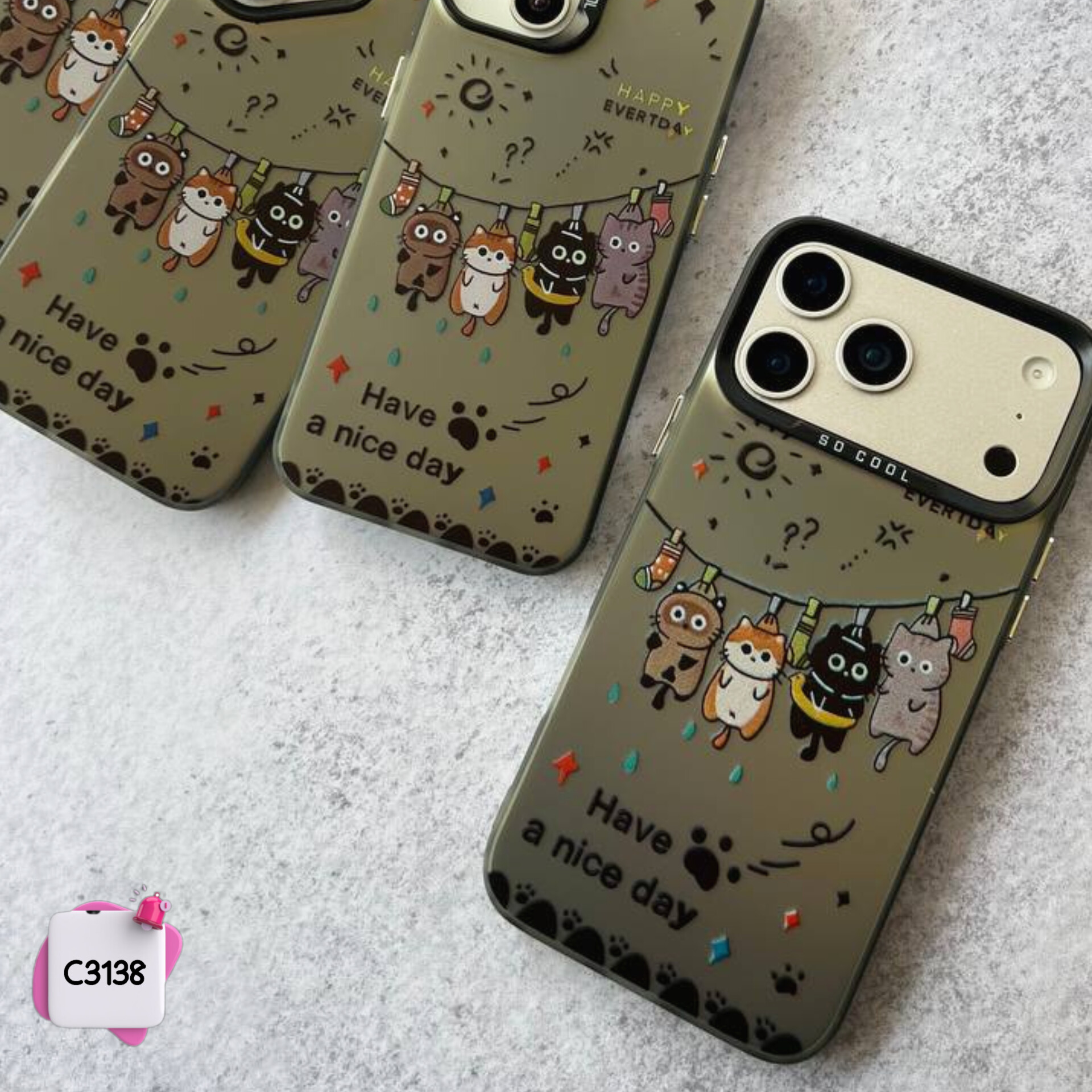 قاب فانتزی طرح Have a Nice Day 🐾 با طراحی بامزه‌ی حیوانات کوچولوی آویزان، یکی از خاص‌ترین و دوست‌داشتنی‌ترین قاب‌های موجود برای گوشی‌های آیفون، سامسونگ و شیائومی است. 💖